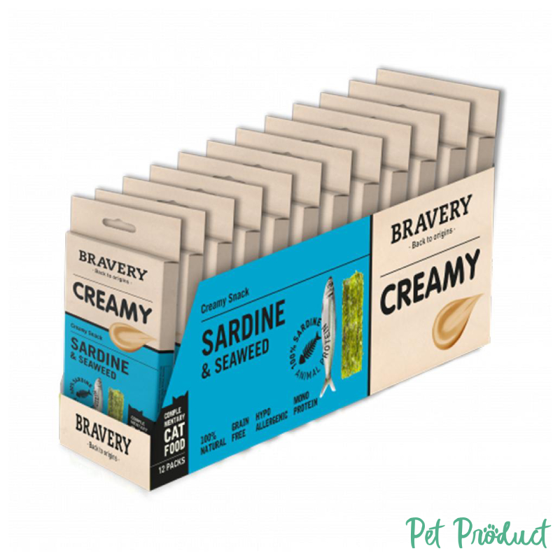 Crème pour chats à base de sardines comme seule source de protéines, qui apporte des acides gras oméga 3, bénéfiques pour la santé cardiovasculaire et aux propriétés anti-inflammatoires. Il contient également des algues qui fournissent des nutriments essentiels bénéfiques au système immunitaire et à la santé oculaire.