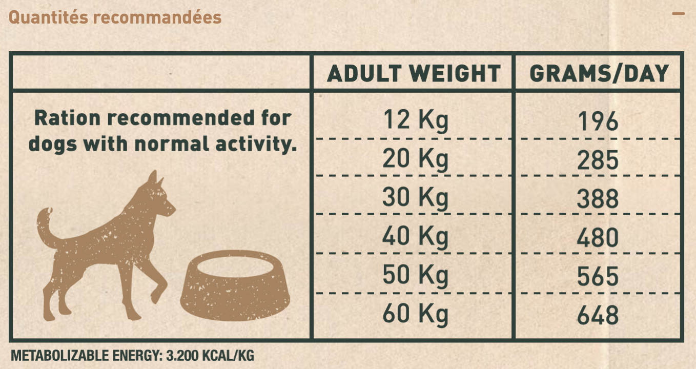 Préconisation d'alimentation des Croquettes BRAVERY Adult Medium & Large Sans Céréales au Porc Iberique: