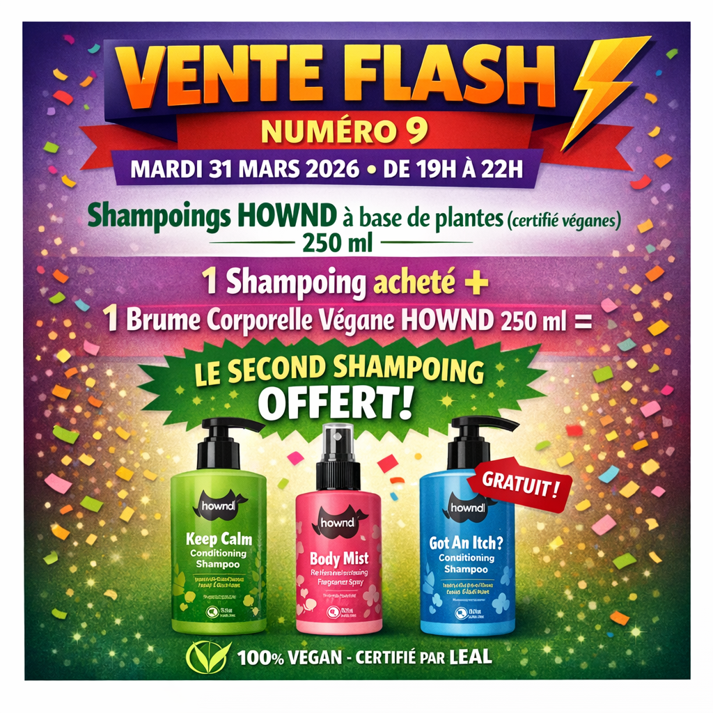 1 shampoing acheté + 1 brume corporelle végane HOWND 250 ml = 1 shampoing OFFERT